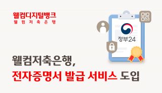 이번에 새롭게 도입된 전자증명서 발급 서비스는 대한민국 전자정부 서비스 ‘정부24’에서 발급하는 전자증명서를 발급·조회·공유·제출 할 수 있는 기능이다. 웰컴디지털뱅크 앱에서 지원하는 전자증명서는 ▲주민등록표등본 ▲주민등록표초본 ▲소득금액증명 ▲사업자등록증명 ▲건강보험료 납부확인서 ▲건강보험자격득실확인서 ▲납세증명서 ▲지방세 납세증명서 등 이다.