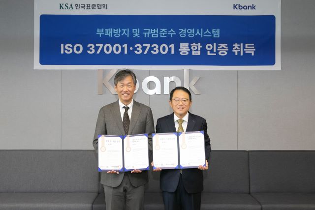 케이뱅크는 국제표준화기구(ISO)가 공인하는 부패방지 경영시스템 ‘ISO37001’과 규범준수 경영시스템 ‘ISO37301’ 통합 인증을 획득했다고 18일 밝혔다.