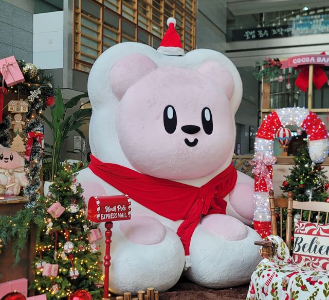 (서울=NSP통신) 강수인 기자 = 한국산업은행 로비에 커다란 인형이 등장했다. 이름은 ‘꾹꾹곰’이다. 고양이 바닥 모양을 한 곰으로 고양이 발바닥의 분홍색 ‘젤리’ 부분을 곰의 얼굴과 손, 발로 표현했다.