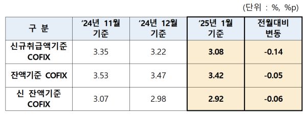 17일 전국은행연합회에 따르면 지난 1월 신규취급액 기준 코픽스는 전월 대비 0.14%p 하락한 3.08%를 기록했다.
