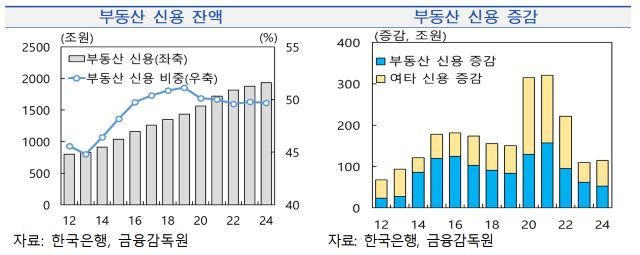 최 국장은 “한정된 금융자원이 생산성이 낮은 부동산 관련 부문에 집중되고 이에 따라 자본의 비효율적 배분이 이뤄져 민간신용의 성장 기여도가 약화된다”며 “또 금융산업 자체의 경쟁력 약화도 우려되는 상황”이라고 우려했다.