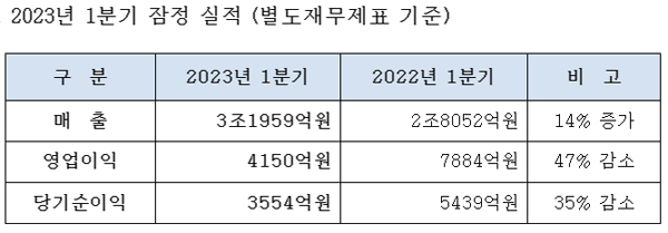 (서울=NSP통신) 이복현 기자 = 대한항공이 23년 1분기 잠정 실적을 발표했다.