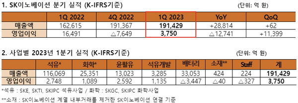 (서울=NSP통신) 이복현 기자 = SK이노베이션이 4일 개최한 2023년 1분기 실적발표회에서 매출액 19조1429억원, 영업이익 750억원을 달성했다고 밝혔다.