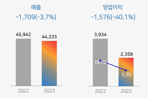 이는 전년대비 매출은 3.7% 하락했고 영업이익은 40.1% 하락한 수치다.