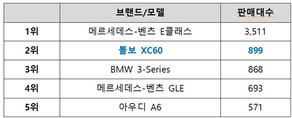 (서울=NSP통신) 강은태 기자 = 볼보자동차코리아(대표 이윤모)가 중형 프리미엄 SUV, XC60의 돌풍으로 한국수입차협회(KAIDA)의 9월 수입차 판매 집계에서 1555대의 판매고를 기록하며 3위에 등극했다.