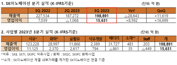SK이노베이션은 “3분기는 정유, 화학 및 윤활유 등 기존 사업의 이익 확대와 배터리 사업의 생산성 향상 및 美 첨단제조세액공제(AMPC) 반영 등 전 사업 부문 이익 성장으로 전 분기 대비 8.4% 개선된 전사 영업이익률 7.9%를 시현했다”며 “배터리사업은 해외 신규 공장 생산성 향상 지속 및 AMPC 수혜 증대, 비용 절감을 통해 4분기 흑자전환을 목표로 하고 있다”라고 밝혔다.