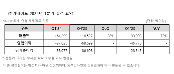 (서울=NSP통신) 이복현 기자 = 위메이드(대표 박관호)가 2024년 1분기 실적을 발표했다.