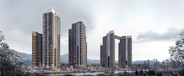 현대건설은 세계적 건축 명가 유엔스튜디오(UNStudio)와 협업해 부산의 자연환경과 도시 이미지를 유기적으로 결합한 랜드마크 디자인을 선보였다. 물결이 능선을 따라 흐르는 듯한 입면으로 자연과 도시의 조화를 형상화하고, 유려한 곡선미와 입체적 조형미를 통해 예술적 아름다움을 더했다.