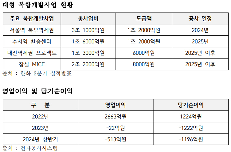 한화 건설부문 김승모 대표의 복합개발사업, 데이터센터 등의 신성장동력 실적에도 불구하고 매출과 영업이익 감소, 재무 건정성은 악재다.