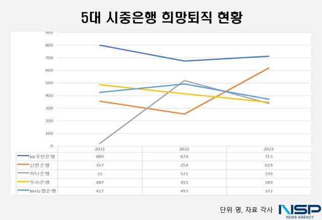 (서울=NSP통신) 강수인 기자 = NH농협은행을 시작으로 은행권의 희망퇴직이 시작됐다. 지난해와 비슷한 수준이지만 조건이 비교적 좋았던 2022년보다는 인원이 줄어들 것으로 보인다. 이와 관련해 은행권 실무자들의 의견을 들어보니 “인력 구조상 희망퇴직 규모는 지금이 최고치이며 점차 줄어들 것”이라고 내다봤다.