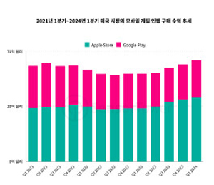 2023년 3분기부터 2024년 1분기까지 미국 시장의 모바일 캐주얼 게임 인앱 구매 수익은 지속적으로 성장해 2024년 1분기에는 2023년 같은 기간보다 21% 증가한 40억달러에 달했다.