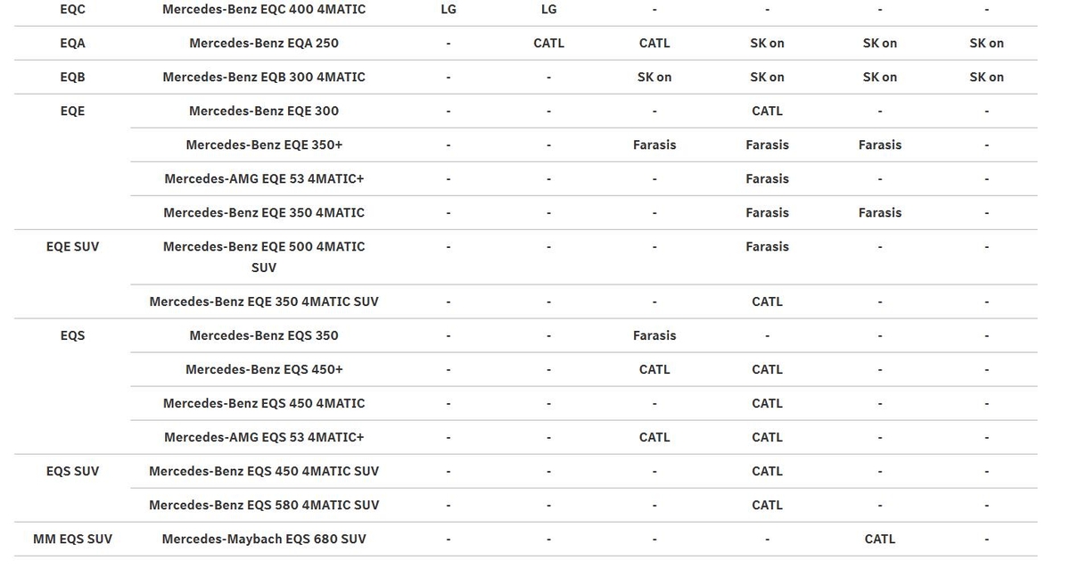 또 벤츠코리아는 이날 판매 중인 전기차의 배터리 제조사 정보를 홈페이지에 공개했다. 벤츠코리아 전기차 모델 16개 중 14개 차종이 중국산 배터리를 탑재한 것으로 확인된다.