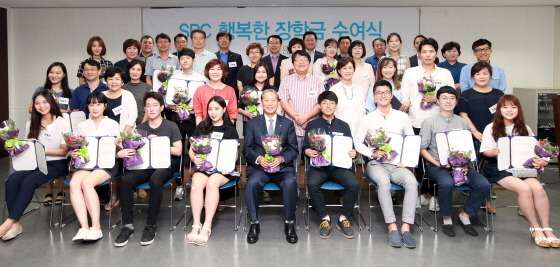 SPC 가맹점주 자녀 행복한 장학금은 파리바게뜨·파스쿠찌·배스킨라빈스·던킨도너츠·빚은 등 SPC그룹 계열 가맹점을 1년 이상 운영한 가맹점주의 대학생 자녀 중 학업성적이 우수한 학생들을 매 학기 선발해 장학금 100만원씩을 지원하는 제도다. 이번 학기에는 총 484명을 선발해 약 5억원의 장학금을 전달했다.