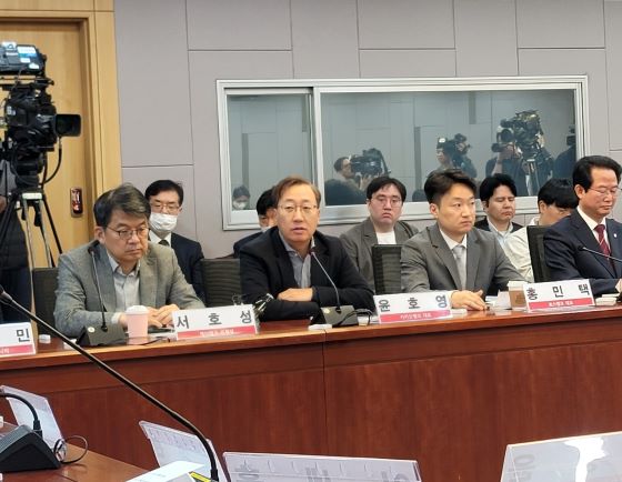 27일 국회의원회관 제1세미나실에서 ‘인터넷뱅크 5주년 뉴 뱅킹 메이브 머니(New banking, Make money)’를 주제로 한 국회 토론회가 개최됐다. 이 자리에는 국회 정무위원회 소속 윤창현 의원(국민의힘), 윤한홍 정무위 간사(국민의힘) 등 국회의원들과 이세훈 금융위원회 사무처장, 이준수 금융감독원 부원장, 윤호영 카카오뱅크 대표, 서호성 케이뱅크 행장, 홍민택 토스뱅크 대표 등이 참석했다.