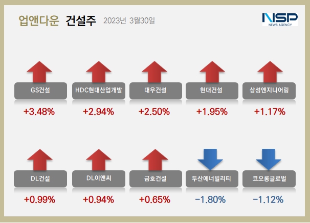 그 외 DL건설(+0.99%),DL이앤씨(+0.94%),금호건설(+0.65%)순으로 상승했다.
