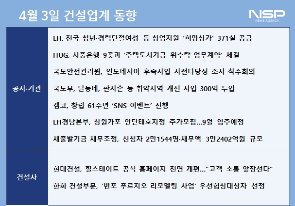 (서울=NSP통신) 정의윤 기자 = 한화 건설부문은 반포 푸르지오 리모델링조합으로부터 우선협상대상자로 선정됐다. 또 정부는 달동네, 쪽방촌 등 도시 취약지역의 생활여건 개선사업을 위해 국비 약 300억원 규모를 지원한다.