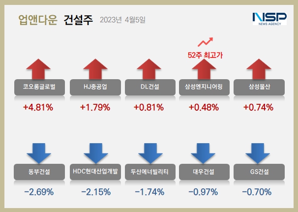 그 외 삼성물산(+0.74%),금호건설(+0.16%)순으로 상승했다.