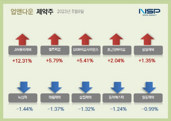 (서울=NSP통신) 김다은 기자 = 9일 코스피(-0.13%)와 코스닥(-0.76%)이 모두 하락한 가운데 제약주는 전일대비 1.44% 상승했다. 이중 상승주는 65개였고 하락주는 91개였다. 보합세는 10종목이다.