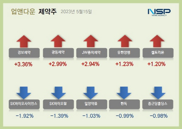 반면 SK바이오팜(-1.39%) 일양약품(-1.03%) 한독(-0.99%) 종근당홀딩스(-0.98%) 동아쏘시오홀딩스(-0.95%) 등이 하락했다.