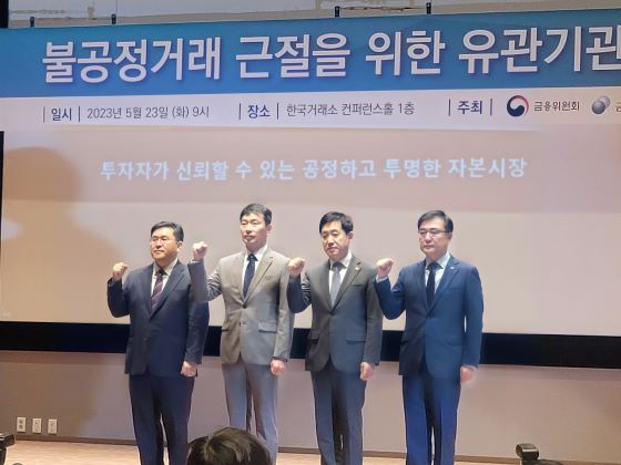 23일 금융위원회·금융감독원·한국거래소·서율남부지검은 KRX 컨퍼런스홀에서 학계 및 연구기관 전문가들과 함께 최근 소시에테제네랄(SG)증권발 주가 급락사태 관련 ‘불공정거래 근절을 위한 유관기관 합동토론되’를 개최했다.