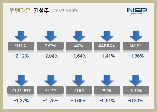 그 외 삼성엔지니어링(-1.27%),금호건설(-1.26%),삼성물산(-0.65%),DL건설(-0.51%)현대건설(-0.39%)순으로 하락했다.