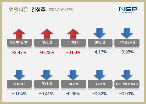건설주 하락…두산에너빌리티↑·현대건설↓