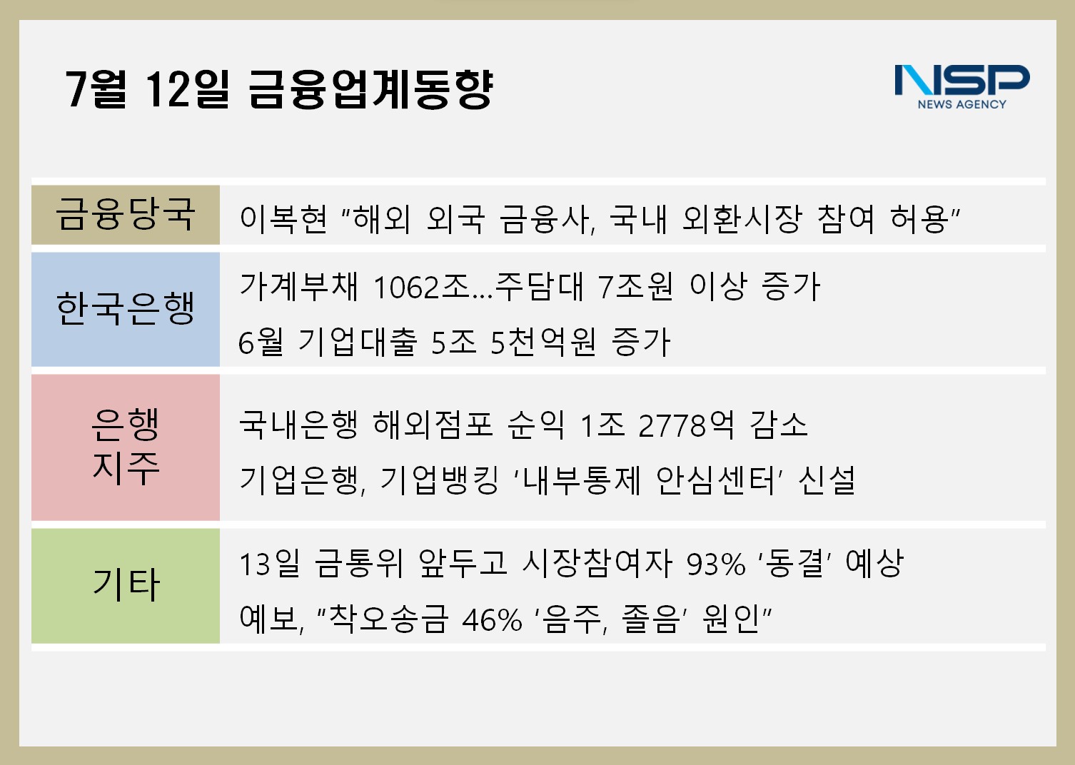 (서울=NSP통신) 강수인 기자 = 은행 가계대출이 1062조를 돌파했다. 최근 정책금융상품과 주택담보대출 규제 완화 등으로 주춤했던 가계대출이 다시 몸집을 불리고 있다. 이와 관련해 금융권 안팎에선 오는 13일 한국은행 금융통화위원회를 앞두고 통화정책방향에 대한 회의적인 시선을 보내기도 했다.