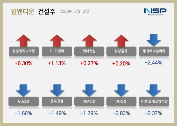 그 외 대우건설(-1.29%),DL건설(-0.83%),HDC현대산업개발(-0.37%)순으로 하락했다.
