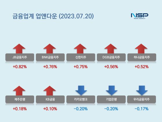 제주은행은 전거래일 대비 0.18%(20원) 올라 1만930원으로 장을 마감했고 KB금융은 전거래일 대비 0.10%(50원) 상승해 4만8200원으로 장을 마쳤다.