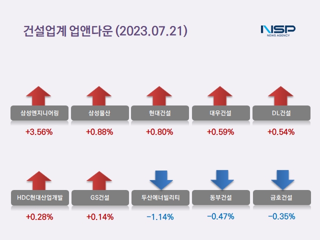 그 외 HDC현대산업개발(+0.28%), GS건설(+0.14%)순으로 상승했다.