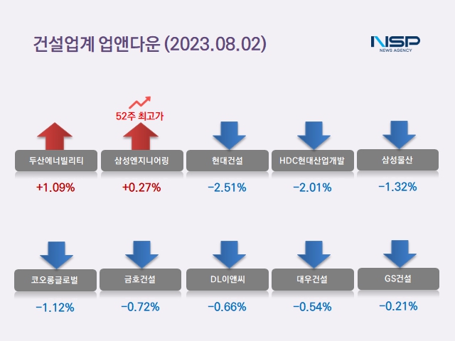 그 외 DL이앤씨(-0.66%),대우건설(-0.54%),GS건설(-0.21%)순으로 하락했다.
