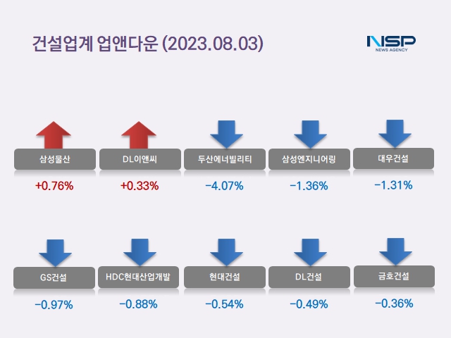그 외 현대건설(-0.54%),DL건설(-0.49%),금호건설(-0.36%)순으로 하락했다.