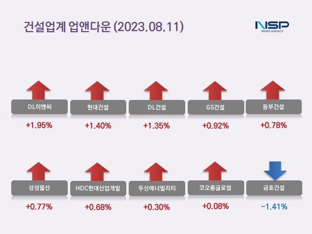 현대건설도 전일 대비 1.40%(500원)상승한 3만6100원으로 장을 마감했고 DL건설도 전일 대비 1.35%(160원)상승해 1만2020원으로 장을 마쳤다.