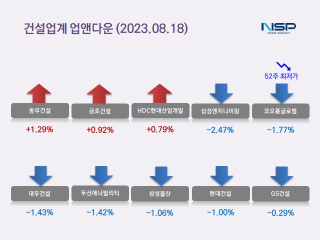 금호건설도 전일 대비 0.92(50원)상승해 5490원으로 장을 마쳤고 HDC현대산업개발도 전일 대비 0.79%(80원)상승한 1만170원으로 장을 마감했다.
