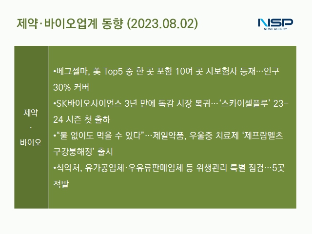 (서울=NSP통신) 김다은 기자 = 셀트리온헬스케어의 아바스틴 바이오시밀러 ‘베그젤마’가 공보험 처방집 등재에 이어 사보험사와 계약을 체결하면서 처방집 등재에 성공했다. 이와 함께 SK바이오사이언스 자체 개발 독감 백신인 ‘스카이셀플루’가 재생산에 들어가면서 3년 만에 독감(인플루엔자) 시장에 복귀한다.