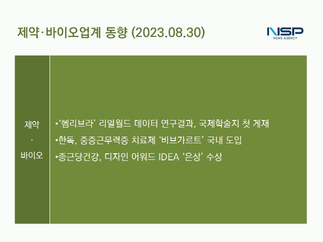 (서울=NSP통신) 김다은 기자 = JW중외제약 A형 혈우병 치료제 ‘헴리브라’의 한국인 항체 환자 대상 효과·안전성을 입증한 연구 결과가 국제학술지 ‘헤모필리아’에 게재됐다. 이와 함께 한독이 아르젠엑스와 계약을 체결하면서 전신 중증근무력증(gMG) 치료제의 허가 등록 및 급여·독점 유통을 담당하게 됐다.