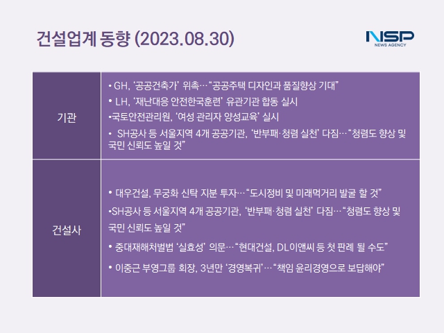 (서울=NSP통신) 정의윤 기자 = 중대재해처벌법 시행이 1년 7개월을 넘어서고 있지만 건설사 사망사고 처벌이 이뤄지지 않고 있다. 국회에서는 판례가 점차 쌓여야 안전예방이 가능할 것이라고 전망했다. 이 가운데 국회는 1호 판례 건설사로 DL이앤씨와 현대건설 등을 주목했다.