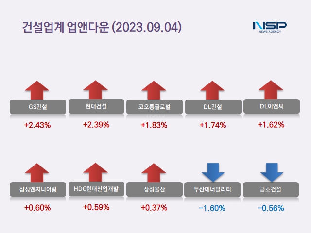 그 외 삼성엔지니어링(+0.60%),HDC현대산업개발(+0.59%),삼성물산(+0.37%)순으로 상승했다.