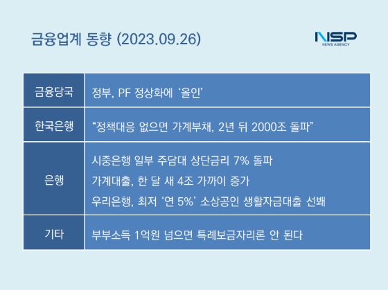 (서울=NSP통신) 강수인 기자 = 부동산값이 다시 오른다는 풍문에 일부 주담대 상품 금리 상단이 7%를 돌파했음에도 가계대출이 크게 증가했다. 한국은행은 정책적 대응이 없을시 2년뒤 가계대출이 2000조를 돌파할 가능성도 있다고 경고했다.
