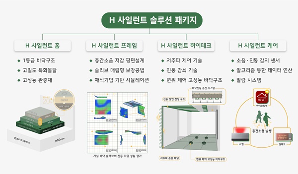 현대건설은 바닥시스템과 평면구조, 저주파·진동 제어 기술, 소음 감지 알고리즘 등 층간소음 저감 시스템 4종을 결합한 ‘H사일런트 솔루션 패키지’를 구축했다.