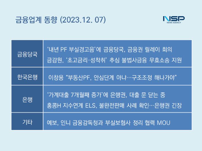 (서울=NSP통신) 강수인 기자 = 내년부터 PF리스크가 본격 현실화될 것이란 우려가 커지고 있다. 증권사 부동산PF연체율이 17.28%까지 치솟고 금융권 PF잔액 역시 한 분기만에 1조 5000억원 늘었다. 이에 금융당국은 5대 금융지주를 포함해 건설사, 제2금융권 등 연이어 릴레이 회의를 나고 있다.