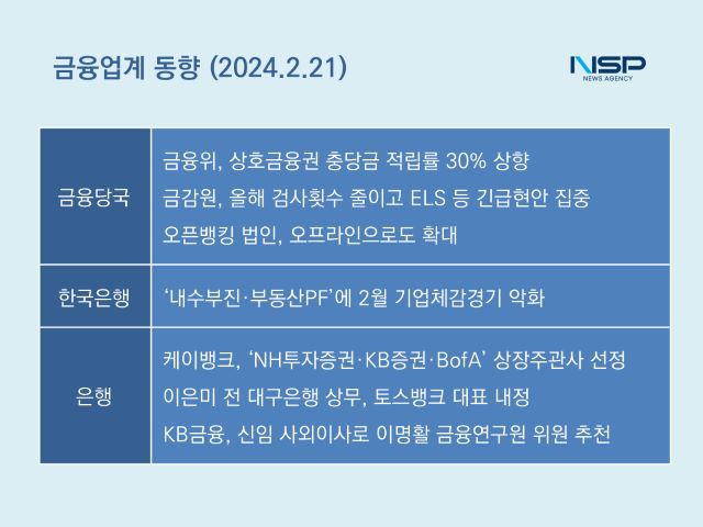 ◆금융위, 상호금융권 충당금 적립률 30% 상향