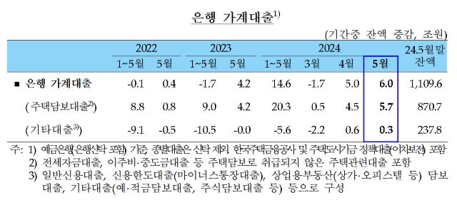 지난 3월 1조 7000억원 감소했다가 부동산 거래가 들썩이며 주택담보대출 중심으로 급증했다. 수도권을 중심으로 아파트거래량은 지난 2월 1만2000호에서 3월과 4월 1만 7000호로 늘었다. 전세자금대출도 지난 4월까지 감소세를 유지하다가 5월 7000억원 증가전환했다.