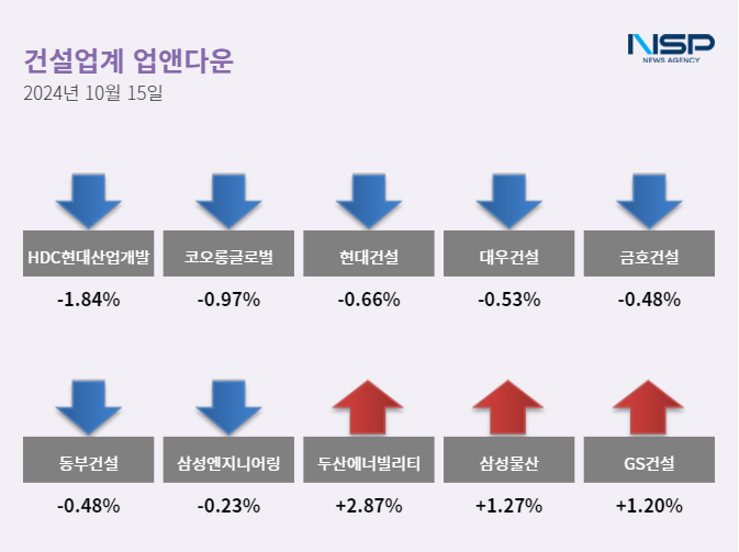 (서울=NSP통신) 정현우 기자 = 15일 코스피(0.39%)와 코스닥(0.46%)은 모두 상승했다. 건설주는 전 거래일 대비 0.06% 상승했고 82종목 가운데 30종목이 상승, 39종목이 하락했다. 보합세는 13종목이다.