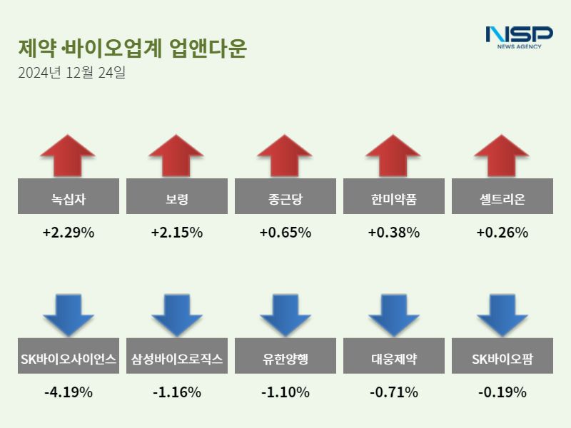 (서울=NSP통신) 이봄볕 기자 = 24일 코스피(-0.06%)는 하락하고 코스닥(+0.13%)은 상승했다. 제약주는 전 거래일 대비 0.43% 하락했고 183종목 가운데 71종목이 상승, 94종목이 하락했다. 보합세는 18종목이다.