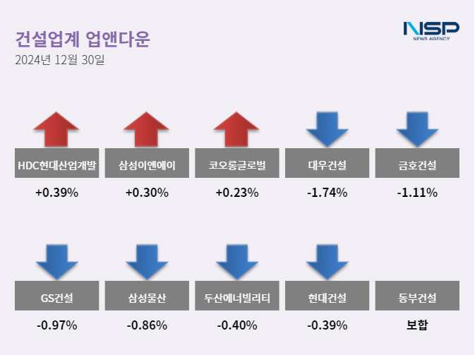삼성이앤에이는 전 거래일 대비 0.30%(50원) 상승해 1만 6550원으로 장을 마감했고 코오롱글로벌은 전 거래일 대비 0.23%(20원) 상승해 8810원으로 장을 마쳤다.