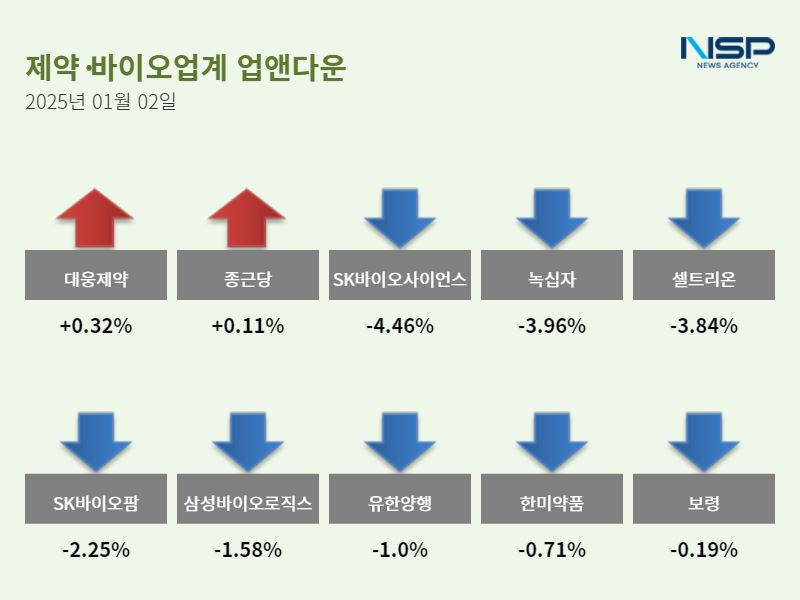 (서울=NSP통신) 이봄볕 기자 = 2일 코스피(-0.02%)는 하락하고 코스닥(+1.24%)은 상승했다. 제약주는 전 거래일 대비 1.75% 하락했고 184종목 가운데 94종목이 상승, 75종목이 하락했다. 보합세는 15종목이다.