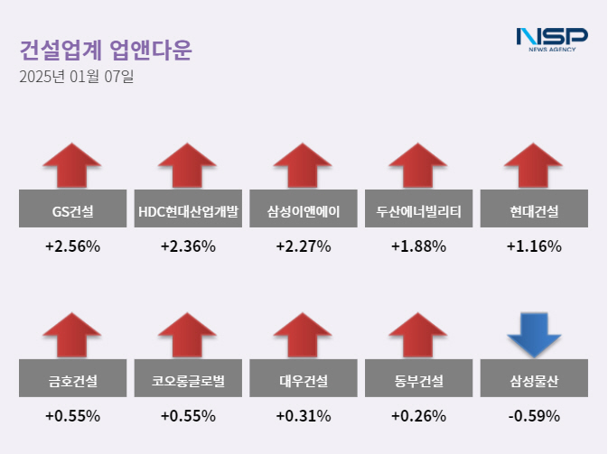 (서울=NSP통신) 정현우 기자 = 7일 코스피(0.14%)와 코스닥(0.05%)은 모두 상승했다. 건설주는 전 거래일 대비 1.80% 상승했고 80종목 가운데 45종목이 상승, 22종목이 하락했다. 보합세는 13종목이다.