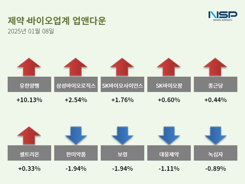(서울=NSP통신) 이봄볕 기자 = 8일 코스피(+1.16%)와 코스닥(+0.19%)은 모두 상승했다. 제약주는 전 거래일 대비 1.35% 상승했고 184종목 가운데 96종목이 상승, 74종목이 하락했다. 보합세는 14종목이다.