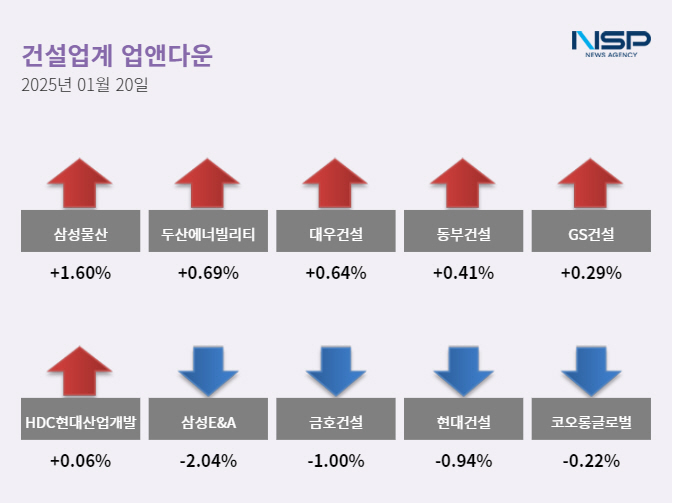 (서울=NSP통신) 정현우 기자 = 20일 코스피(-0.14%)는 하락, 코스닥(0.41%)은 상승했다. 건설주는 전 거래일 대비 0.79% 하락했고 80종목 가운데 22종목이 상승, 50종목이 하락했다. 보합세는 8종목이다.